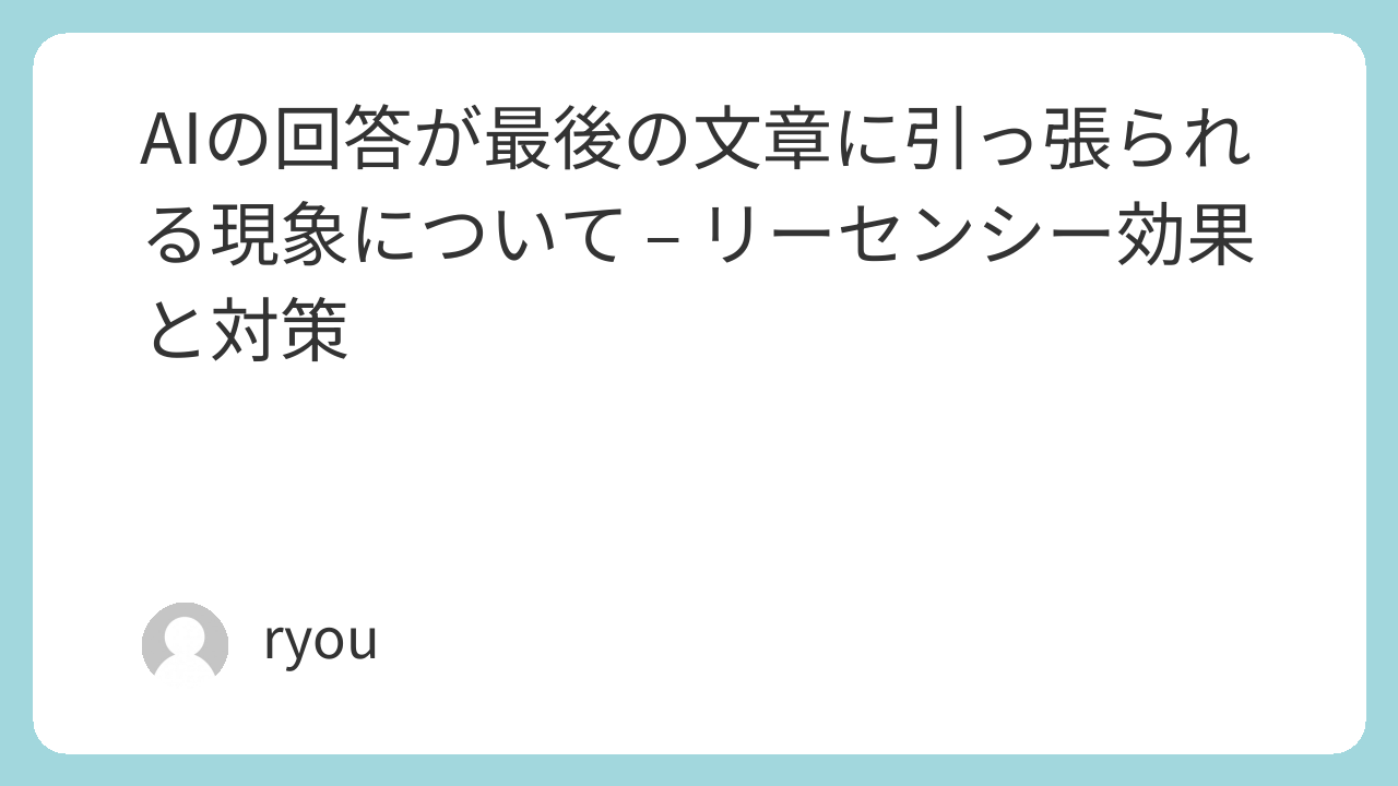 この観察は非常に鋭い指摘で、確かにAIシステム、特に大規模言語モデルには「リーセンシー効果」と呼ばれる傾向があります。これは文章の後半部分、特に最後に書かれた内容により強く影響を受けやすいという現象です。