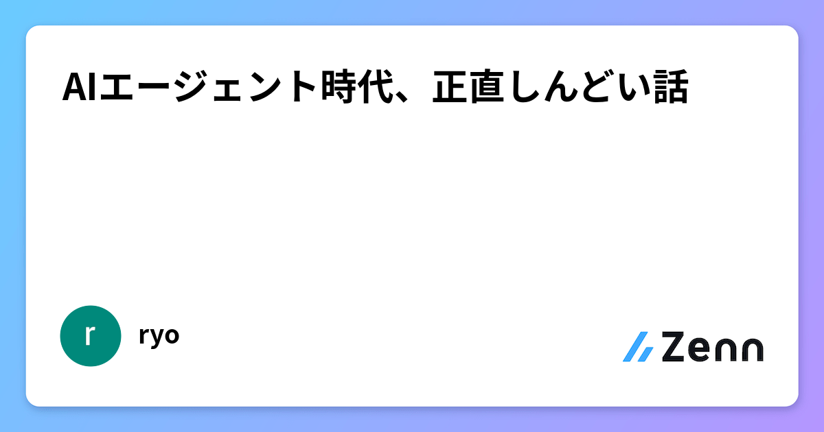 先日、Zennで「AIエージェント時代、正直しんどい話」という記事を読みました。