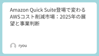 はじめに2025年10月9日、Amazon Web Services(AWS)は「Amazon Quick Suite」を発表しました。月額450円からという価格で、AI搭載のコスト分析ツールが誰でも使えるようになったことで、AWSコスト削...